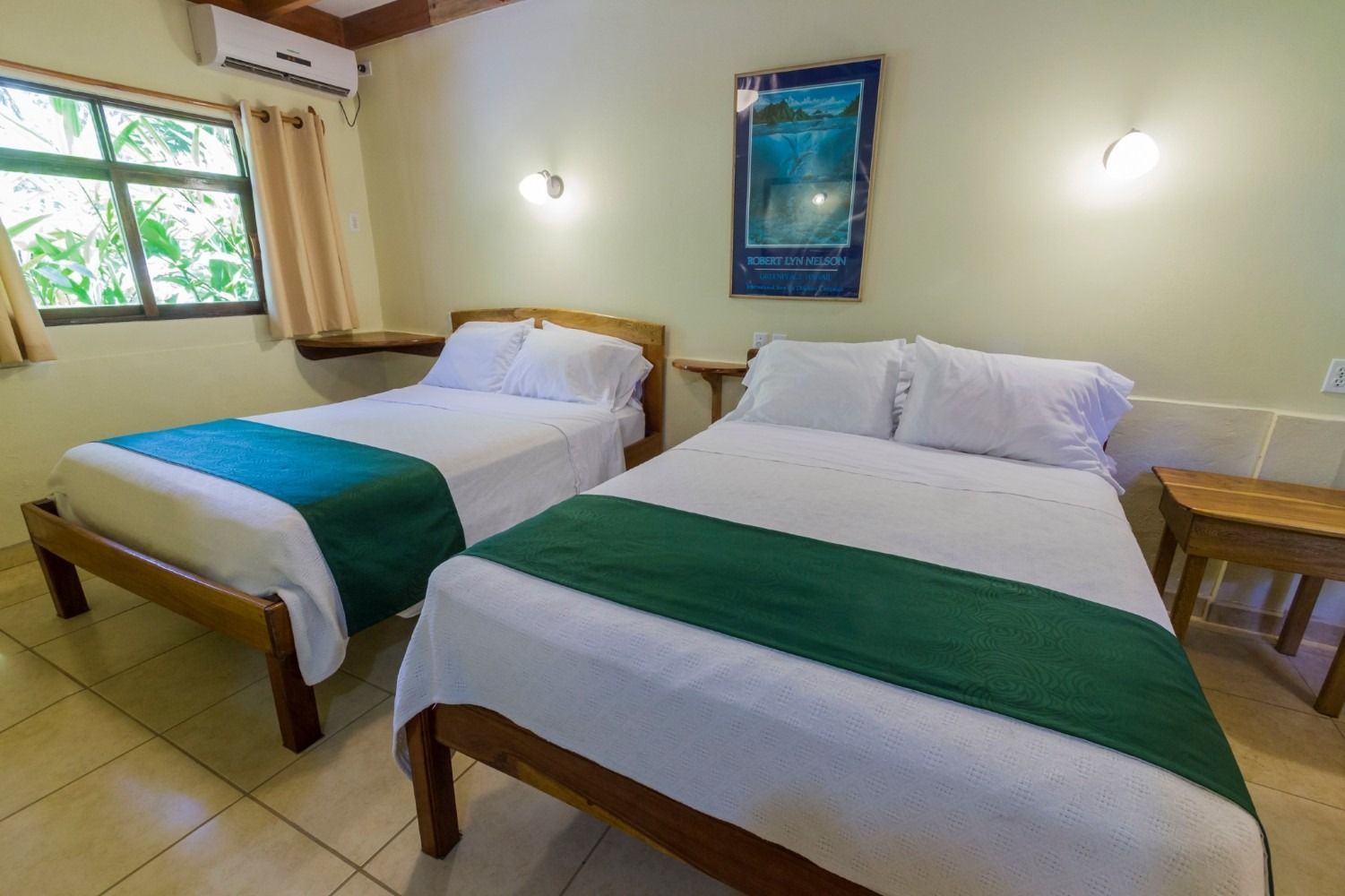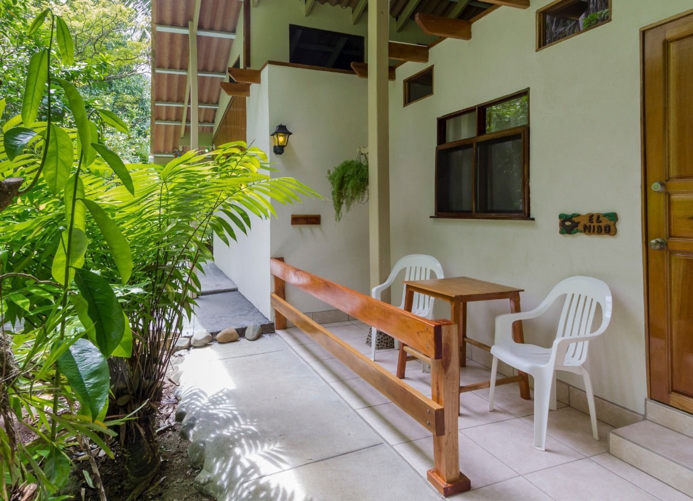 Charming ground-floor room with views of the garden and creek. Includes a patio, sitting area, and en-suite bathroom. Enjoy easy access to the game room and restaurant (same building). Features air conditioning, fans, refrigerator, and a TV with satellite channels. No stairs. Located across the creek from La Villa El Oso Perezoso. Perfect for families or any 1–4 guests.